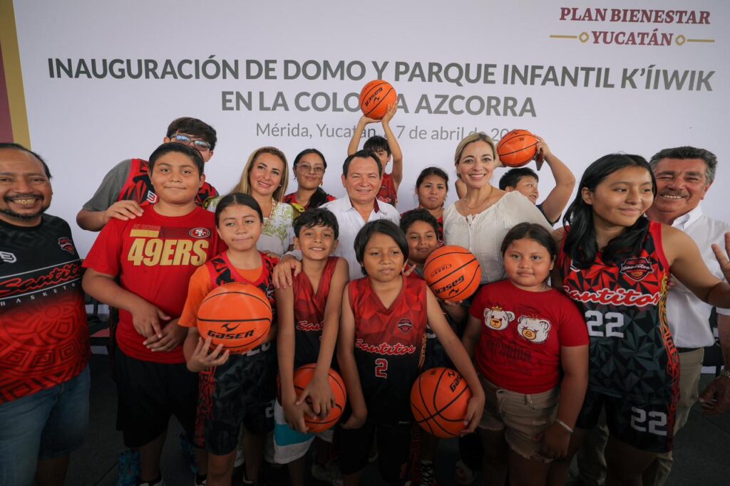 En la colonia Azcorra, el titular del Ejecutivo estatal entregó la construcción de un domo en la cancha de usos múltiples y la remodelación del parque infantil K’iiwik, con una inversión superior a 3.5 millones de pesos, lo que permitirá a niñas, niños y jóvenes contar con espacios dignos y seguros para el deporte y la convivencia.