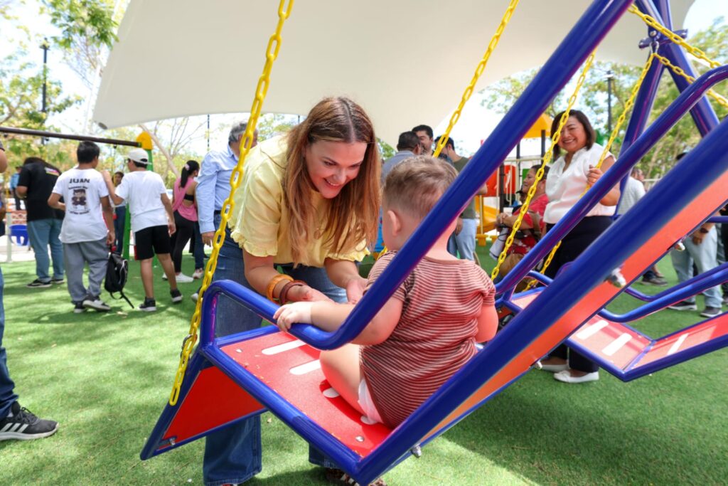 La alcaldesa también resaltó que la seguridad es prioridad en cada obra, por lo que el parque cuenta con un sistema eléctrico integral, luminarias modernas y espacios diseñados para el uso seguro de mujeres, niñas, niños y personas mayores.